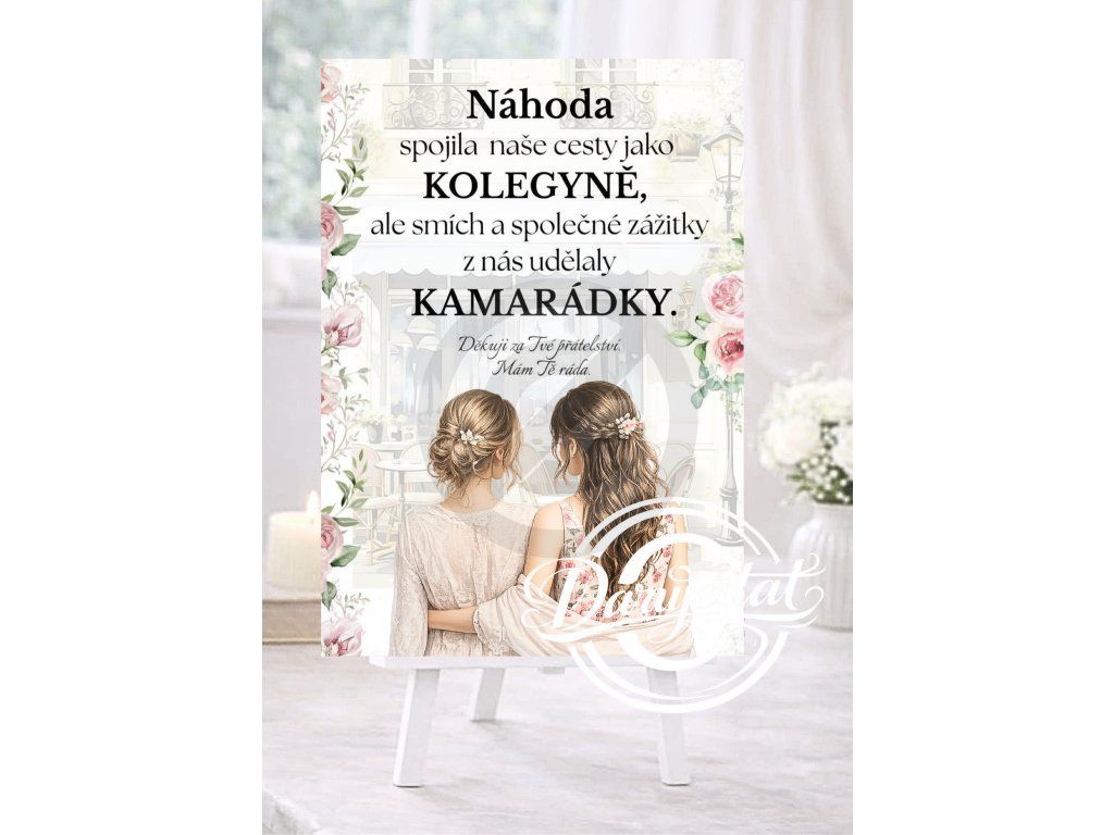 Obrázek s citátem na dřevěné bukové destičce můžete věnovat svým blízkým jako osobní dárek, který si mohou pověsit nebo jen opřít na poličce.TEXT : Náhoda z nás udělala kolegyně, ale smích a společné zážitky z nás udělaly kamarádky. Jedná se o originální návrh grafiky. Ručně lepeno a patinováno.