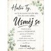 Obrázek s citátem a háčkem na dřevěné bukové destičce. Obrázek je chráněn copyrightem, který bude při zhotovení odstraněn.