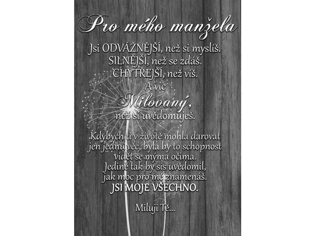 Kdybych ti v životě mohla darovat jen jednu věc, byla by to schopnost vidět se mýma očima. Jedině tak by sis uvědomil, jak moc pro mě znamenáš. Jsi moje všechno. Miluji Tě....